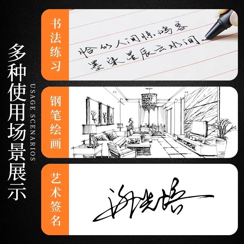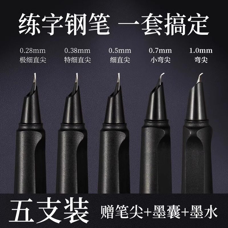 📚 弯尖粗头学生美工笔尖弯头瘦金体书法笔练字用正姿小学生可换墨囊钢笔硬笔书法刚笔书写吸墨笔锋可替换