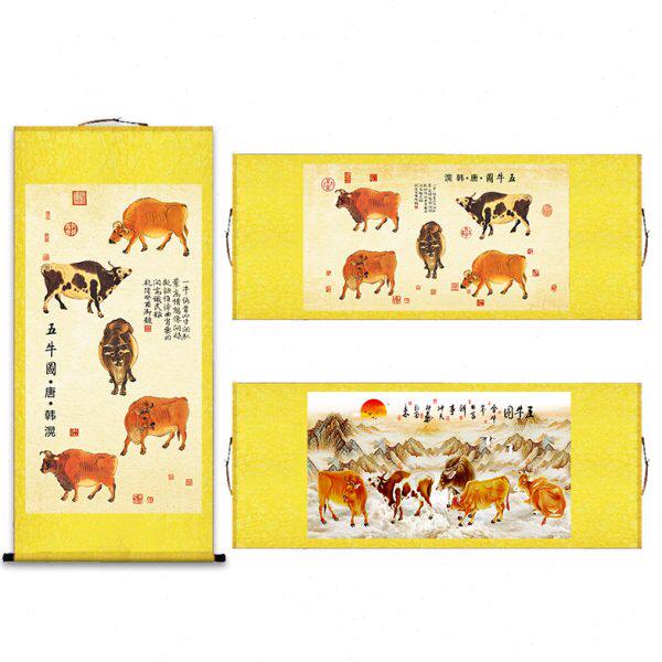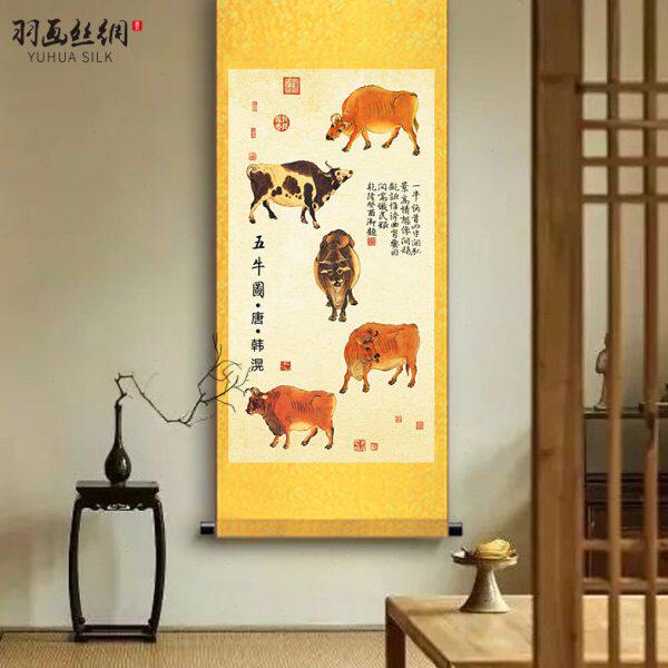 📚 唐韩滉五牛图挂画牛画水牛图群牛图传世名作客厅书房中式墙壁装饰