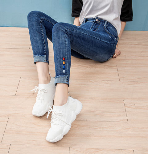 📚 高腰牛仔九分裤女2025春秋新款弹力韩版修身显瘦刺绣小个子百搭裤