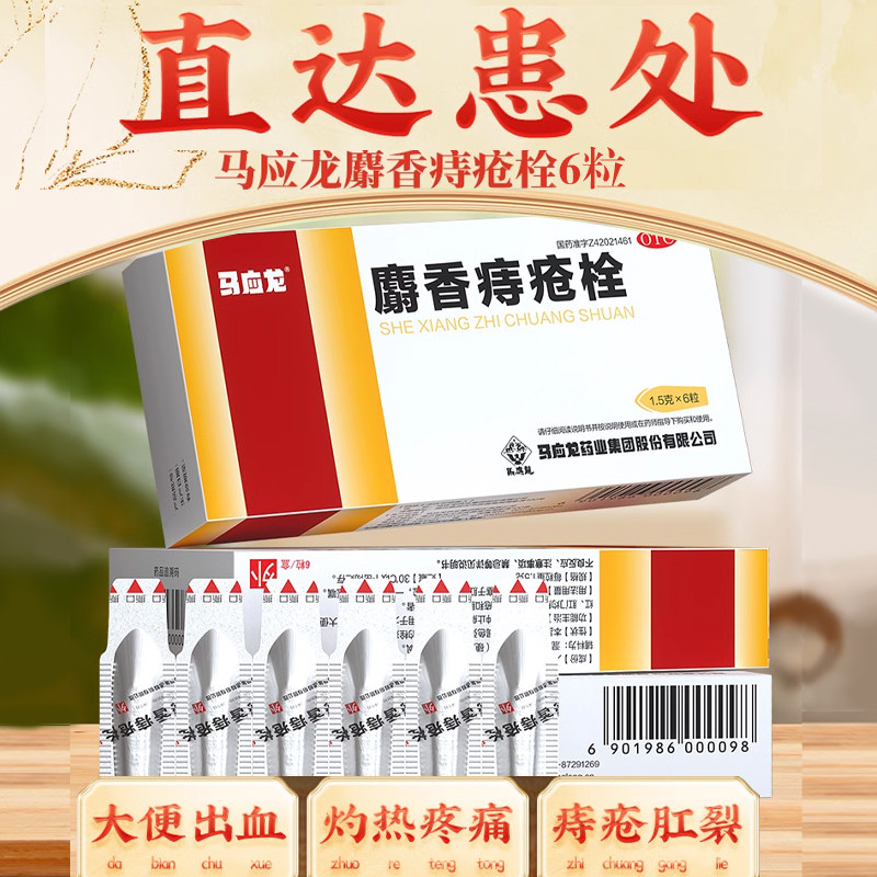 📚 马应龙痔疮栓6粒肛裂便血消肿肛周湿疹瘙痒痔疮便秘出血消肉球