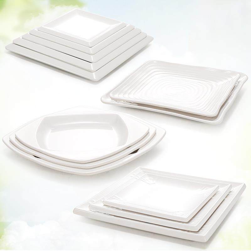 📚 A5密胺盘子正方形塑料碟子饭厅商用四方翘角盘彷瓷餐具快餐炒盘子