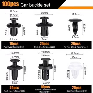 📚 100PCS盒装卡扣通用型汽车保险杠门板卡子后备箱挡泥护板螺丝膨胀