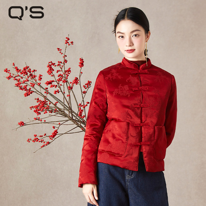 📚 秸熙冬季新中式国风羽绒服高级感提花90鹅绒轻薄保暖红色提花外套