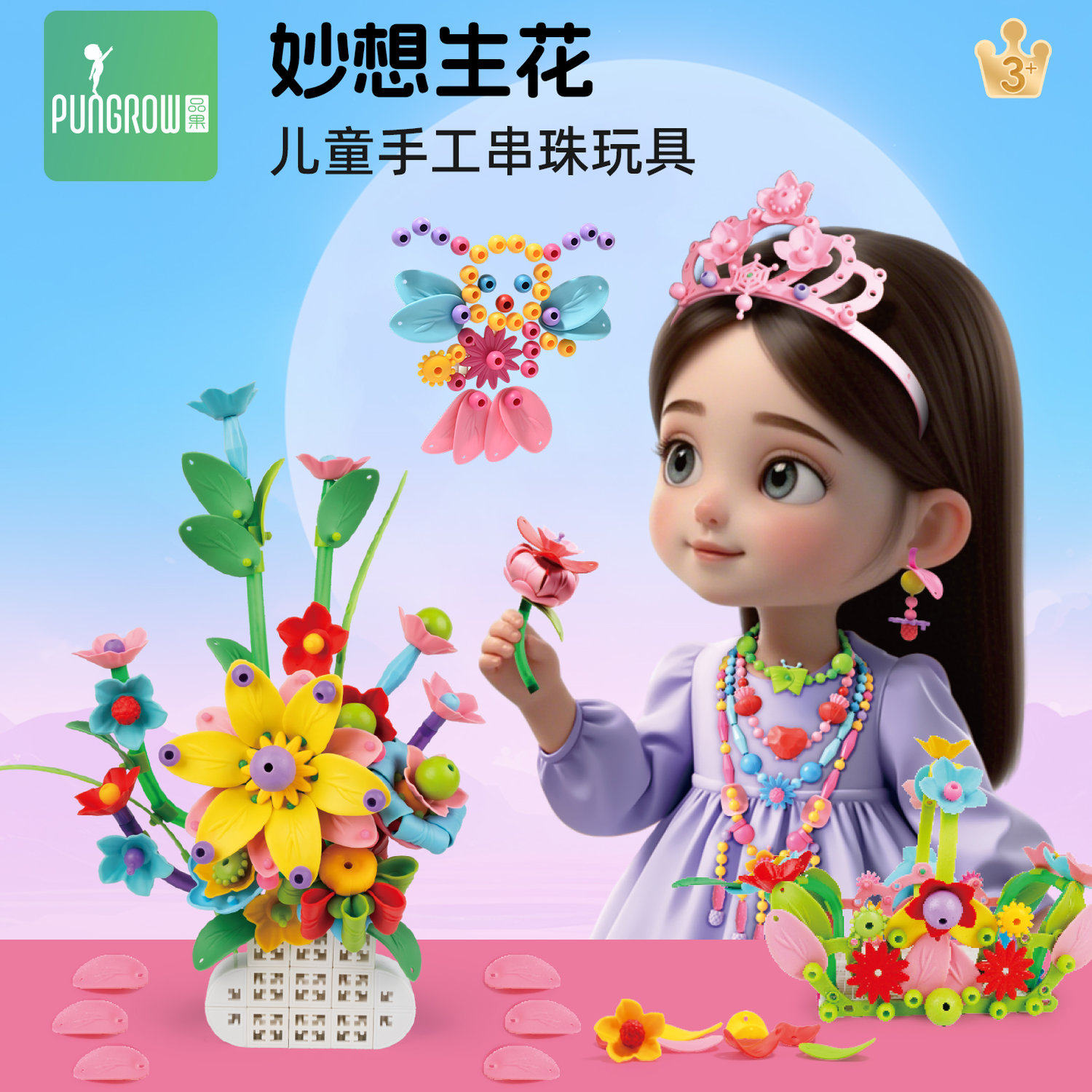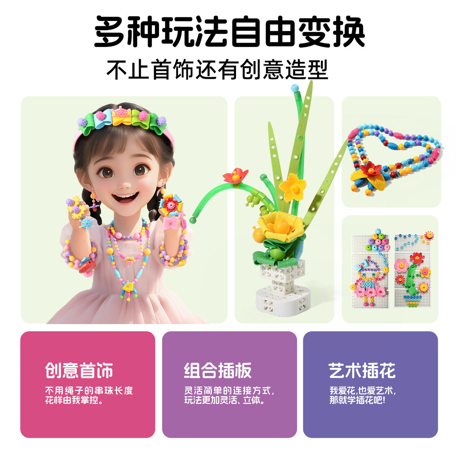 📚 品果波普珠儿童手工串珠无绳女孩串珠子饰品DIY益智雨果女孩玩具