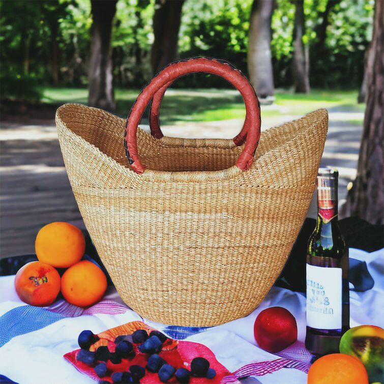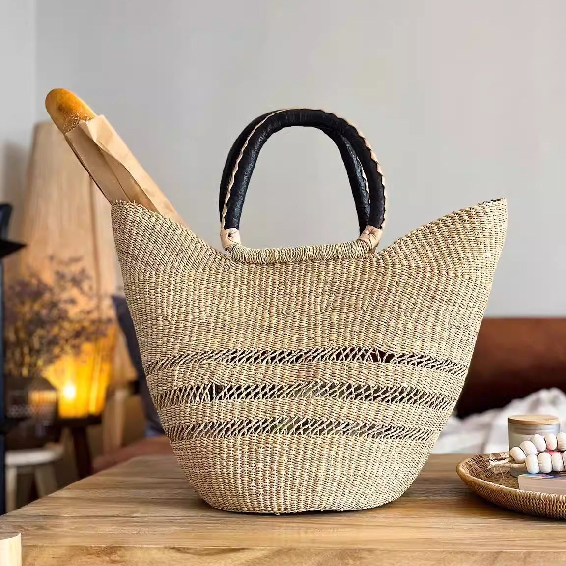 📚 Roomology加纳进口手工编织篮托特包草编购物篮收纳果篮女士手包