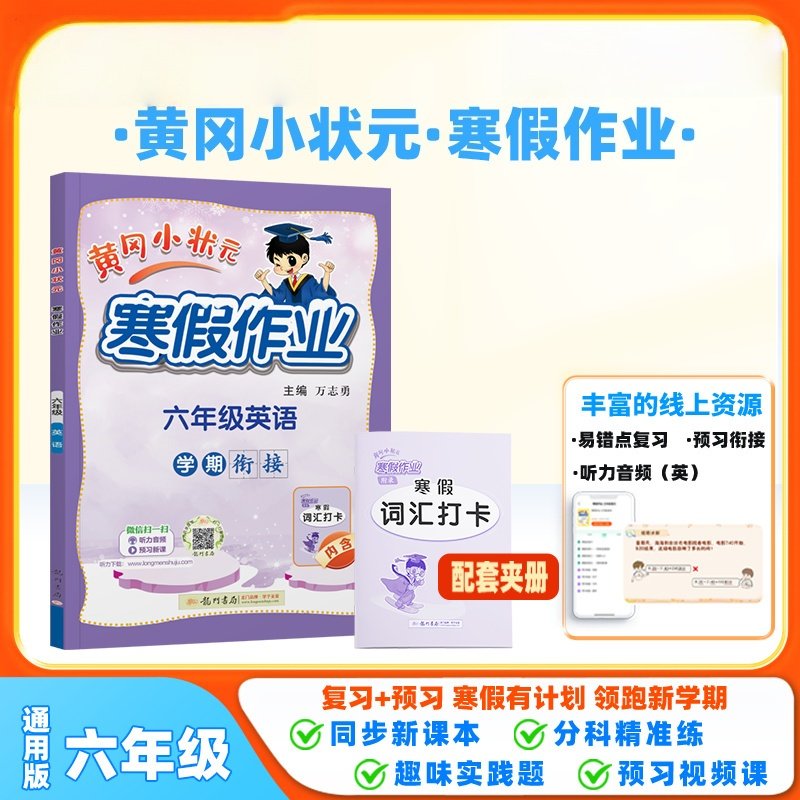 📚 2026春黄冈小状元寒假作业六年级英语全国通用版 小学英语寒假作业本6年级上册下册寒假衔接预习复习练习册附送词汇打卡正版