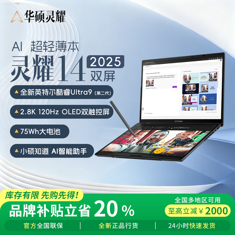 📚 【电脑以旧换新补贴】华硕灵耀14/16air双屏办公轻薄本电脑笔记本