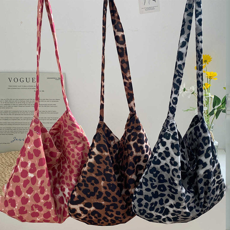📚 韩系博主豹纹帆布包辛芷蕾同款慵懒风单肩包斜挎包大容量轻便布袋