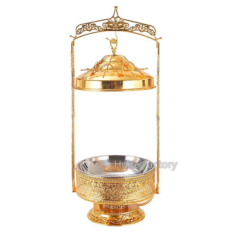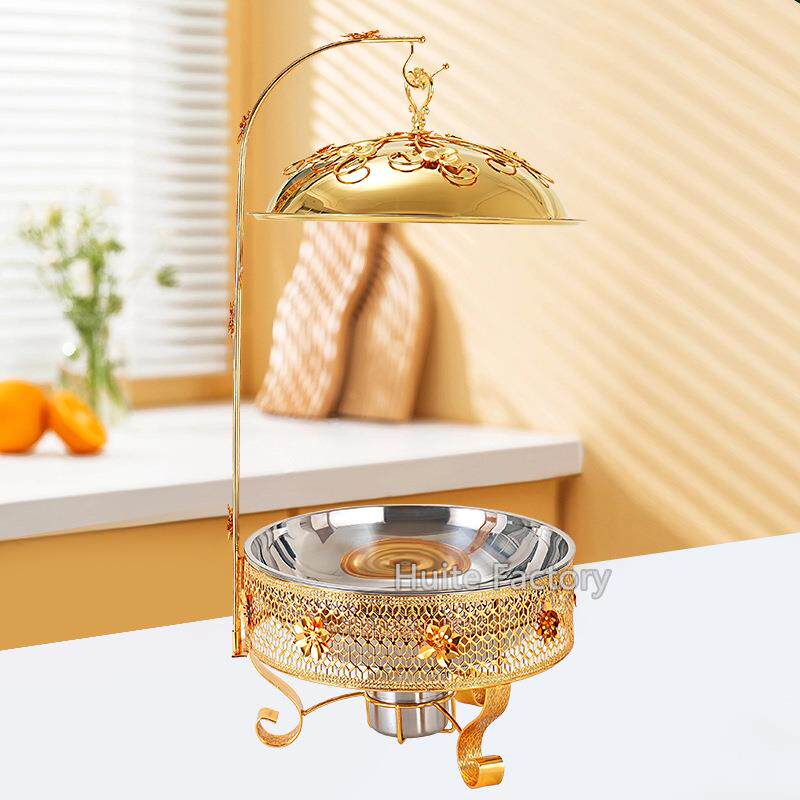 📚 8L豪华金色吊盖圆形自助餐炉酒店餐厅酒精锅布菲炉chafing dishes
