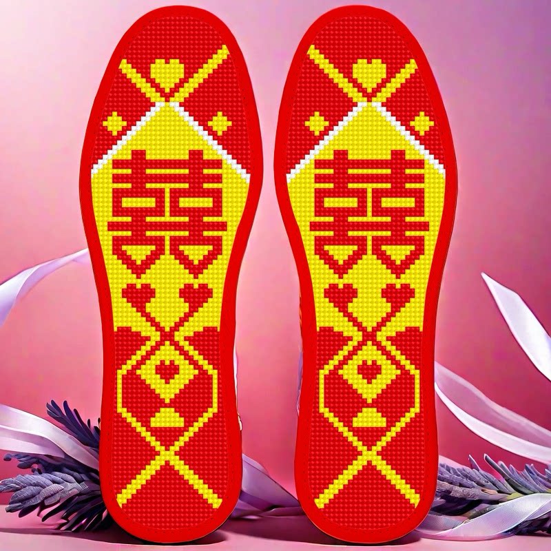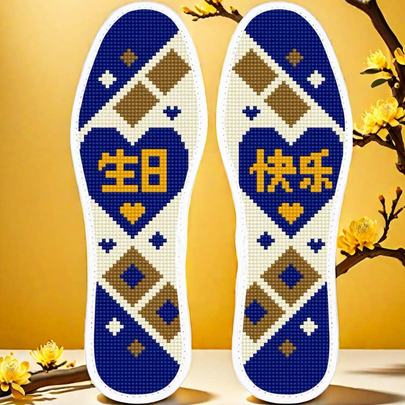 📚 贵气配色生日快乐时尚稳重带针线十字绣鞋垫送人爱心囍太阳花熊猫