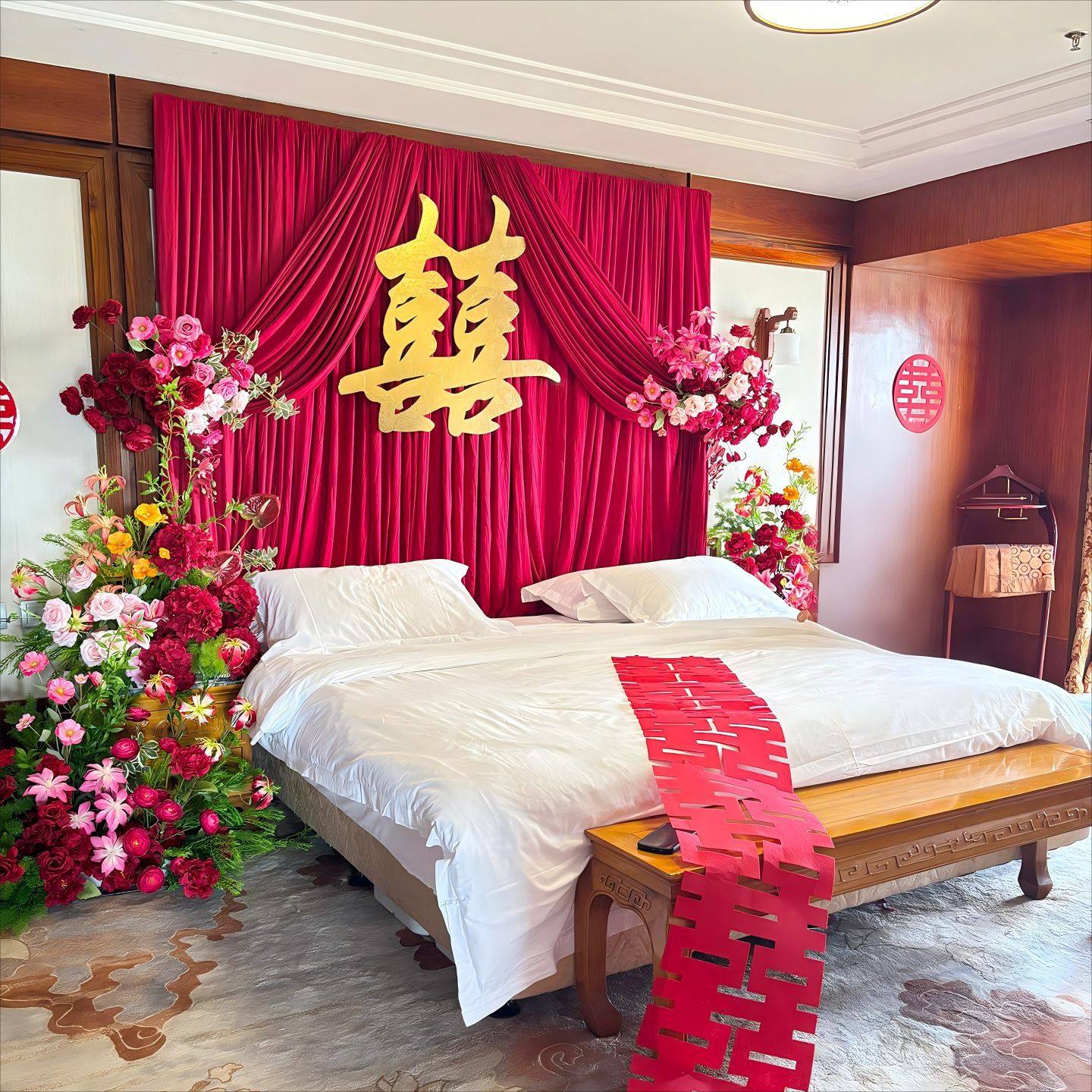 📚 婚房装饰布置新中式布幔结婚喜字床头氛围装饰婚礼卧室床头背景墙