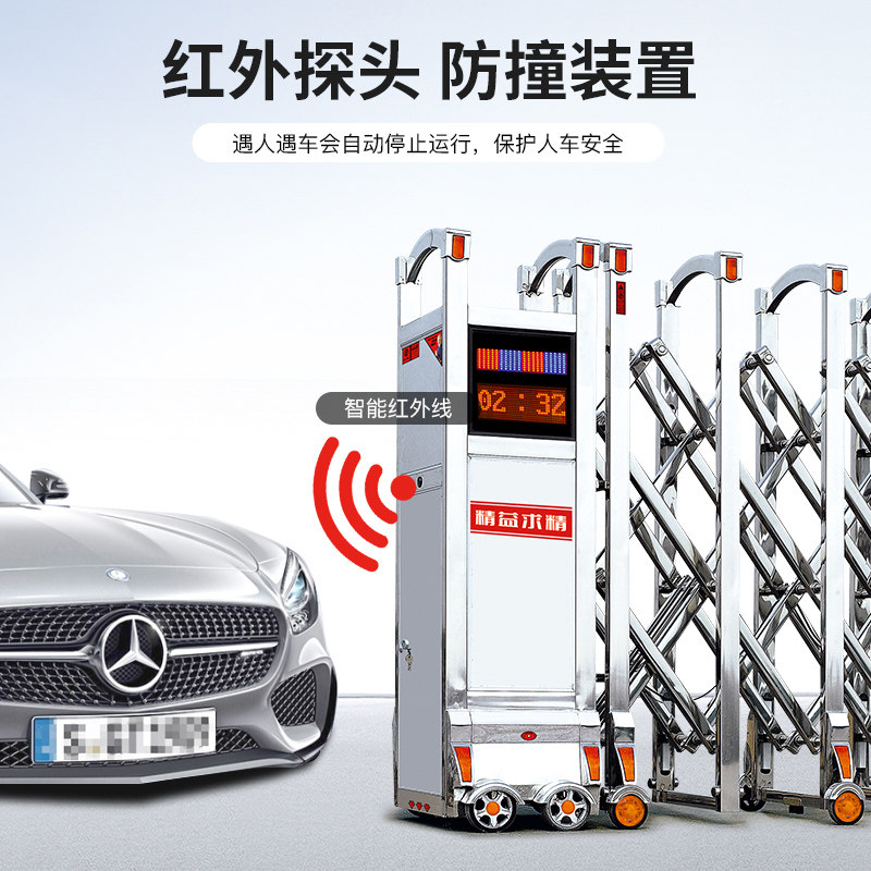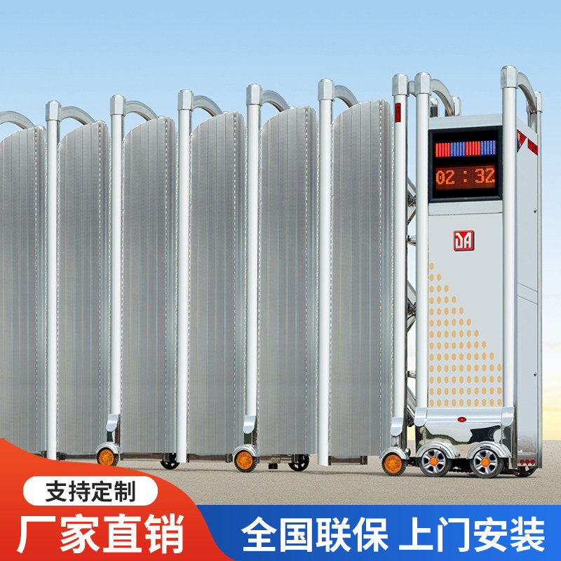 📚 不锈钢伸缩门电动大门学校庭院工厂铝合金无轨折叠封板遥控收缩门