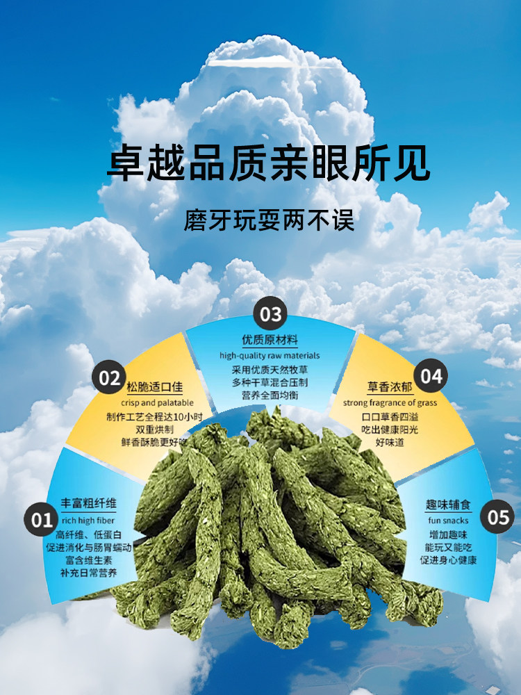 📚 逸宠|能量活力草条龙猫零食兔粮提摩西草条磨牙棒豚鼠专用磨牙子
