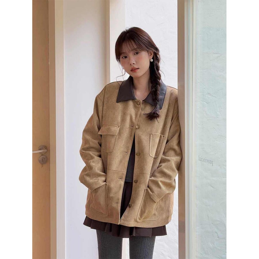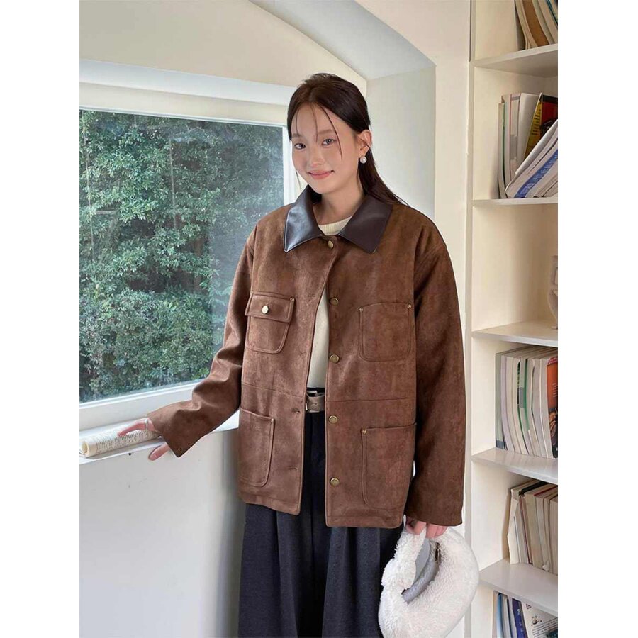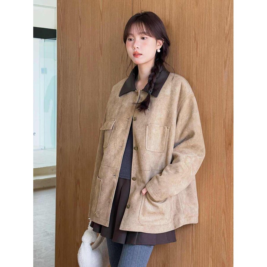 📚 大码胖mm高级感复古拼接外套女冬季皮毛一体夹克加绒上衣气质开衫