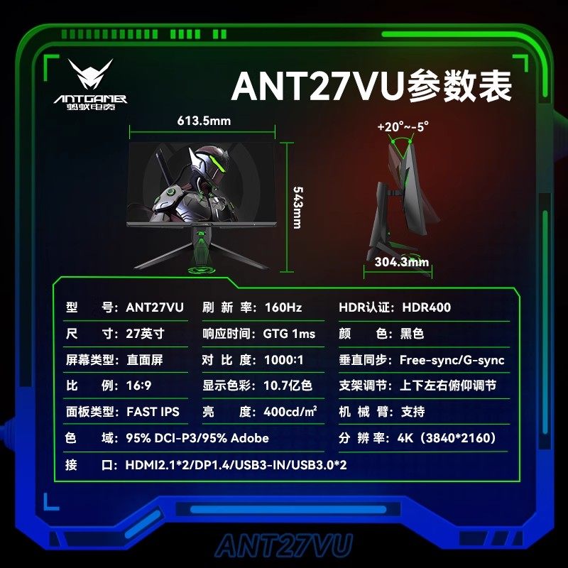 📚 国补ANTGAMER蚂蚁电竞27英寸4k160Hz显示器防蓝光电脑屏ANT27VU