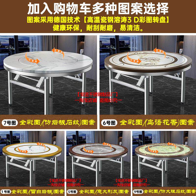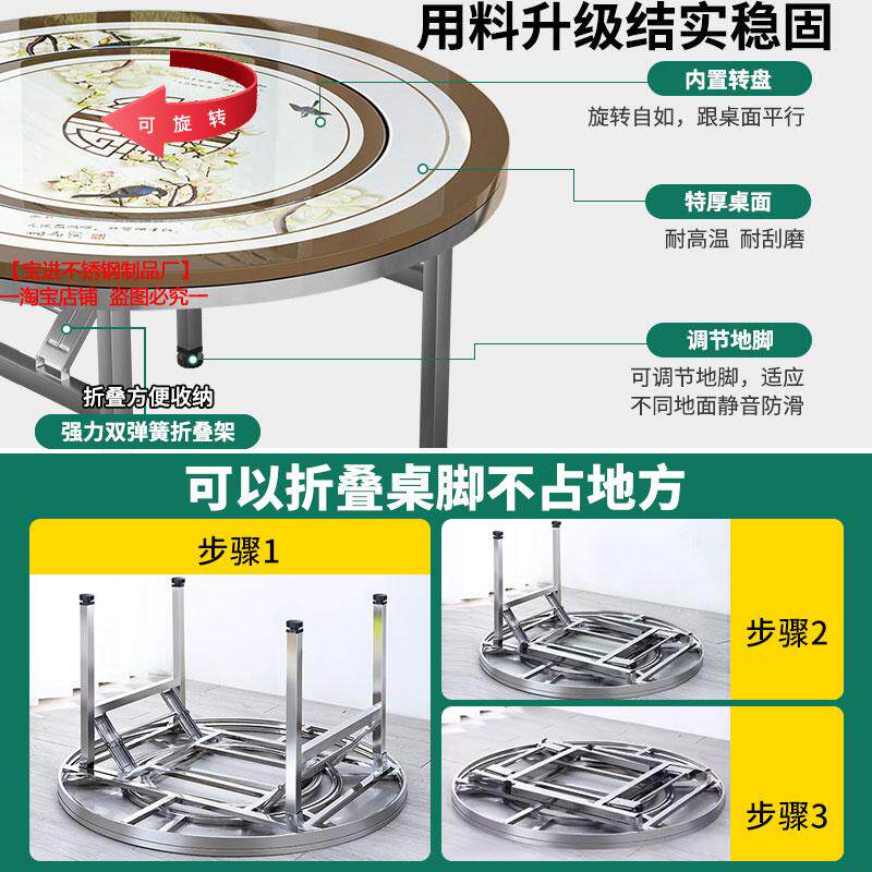 📚 不锈钢内置转盘圆桌不锈钢转盘圆桌家用加厚餐桌商用饭桌折叠桌子
