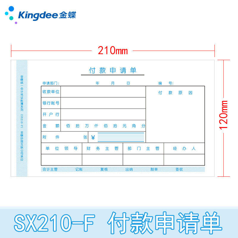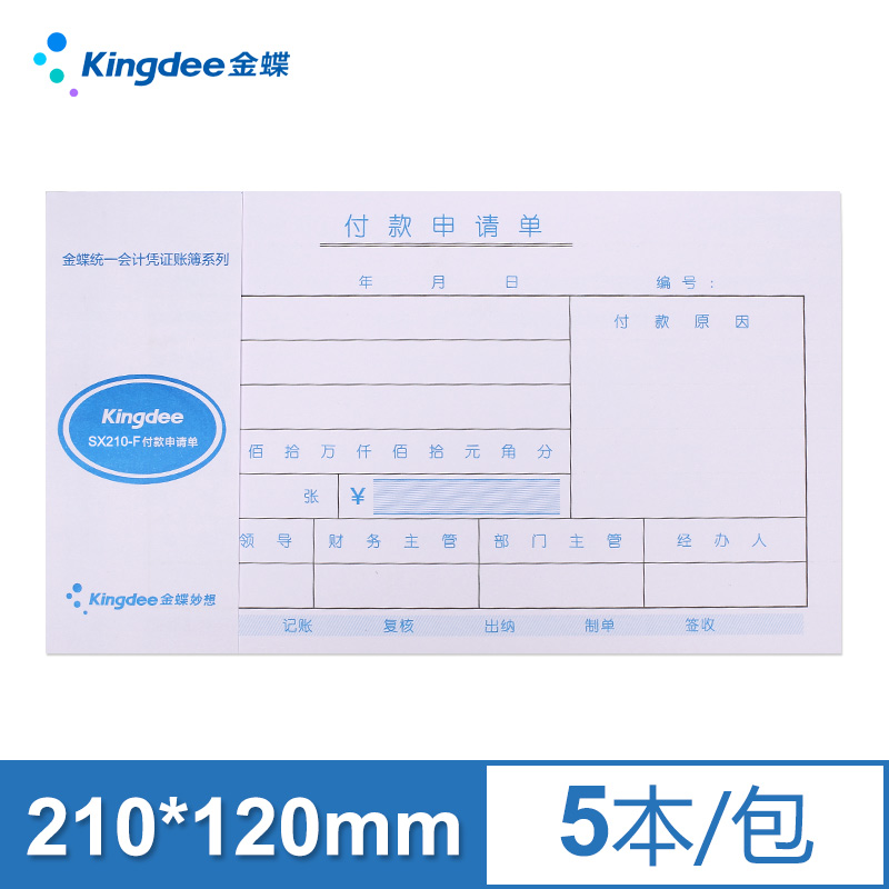 📚 金蝶妙想付款申请单SX210-F付款凭单210*120mm付款审批单付款单据开票1包5本