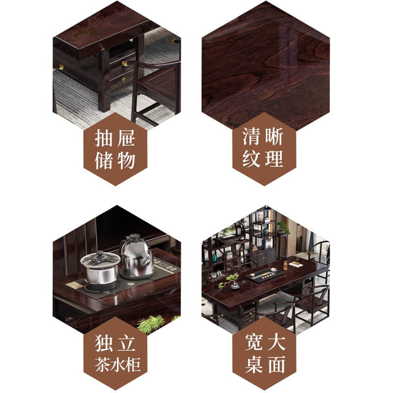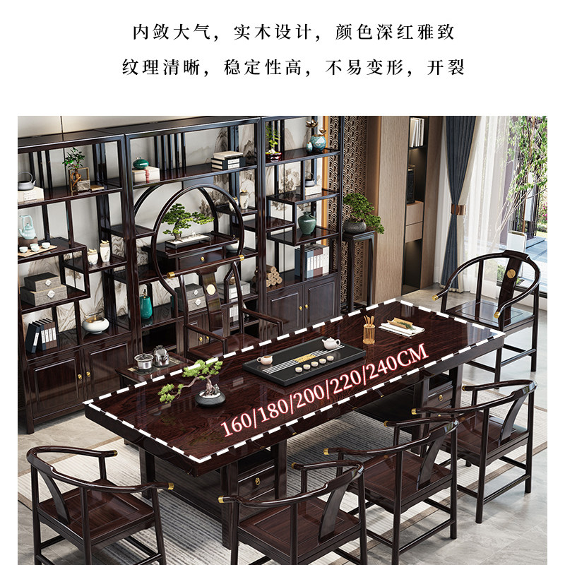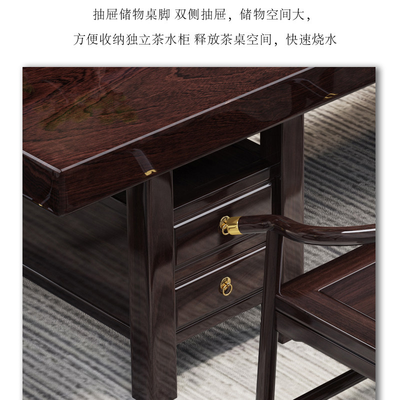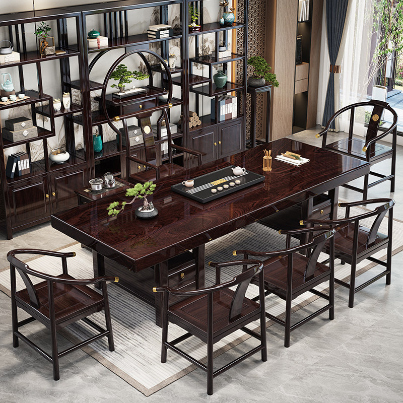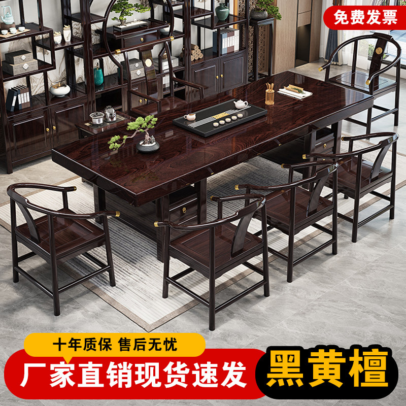 📚 黑黄檀实木大板茶桌椅组合新中式办公室茶台高端家用茶几套装一体
