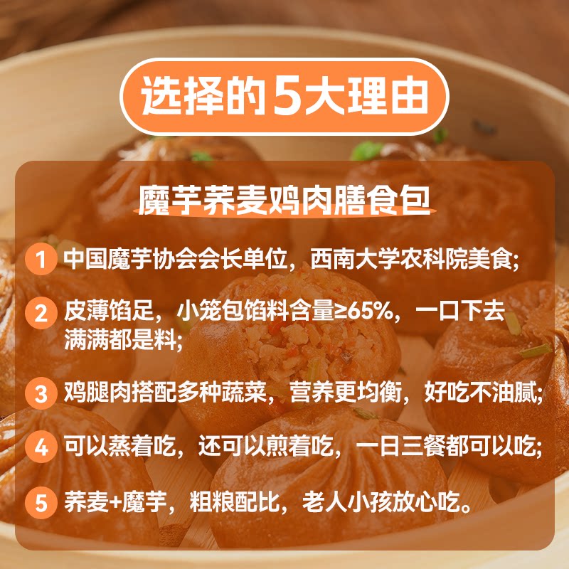 📚 【所有女生】西大魔芋荞麦鸡肉膳食小笼包子健康早餐速食