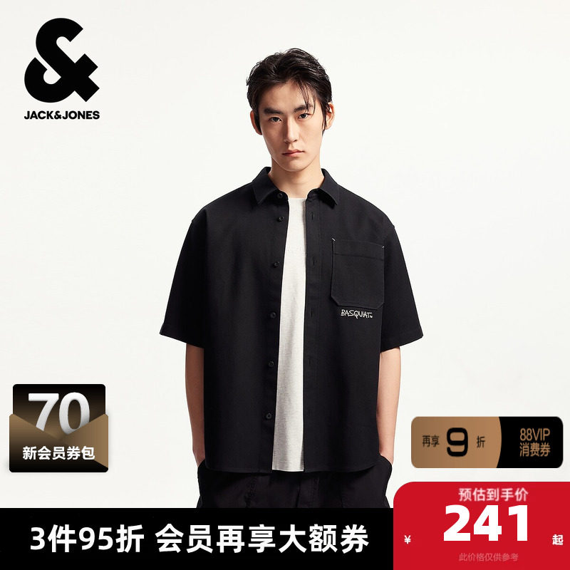 📚 杰克琼斯奥特莱斯男装BSQ联名夏季新款简约短袖宽松衬衫上衣