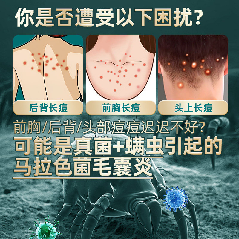 📚 治疗马拉色菌毛囊炎后背部前胸祛痘痒长痘痘专用喷雾剂去除螨药膏