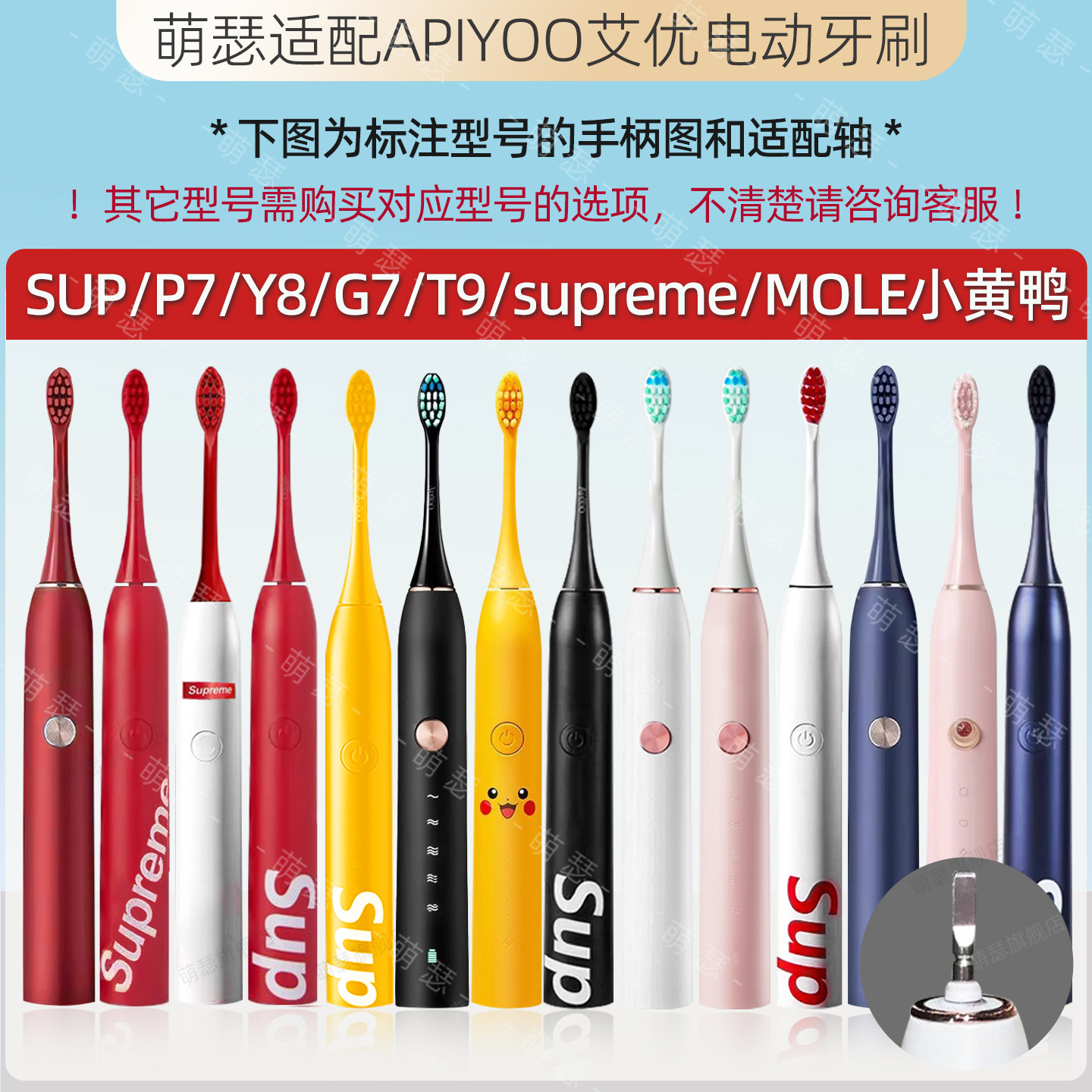 📚 萌瑟适配荷兰艾优APIYOO电动牙刷头SUP/P7G7Y8/T9/T1/T11/T1A/P8A