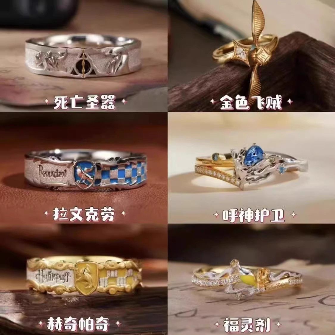 📚 哈利波特霍格沃茨格兰芬多斯莱特林拉文克劳赫奇帕奇手工戒指周边