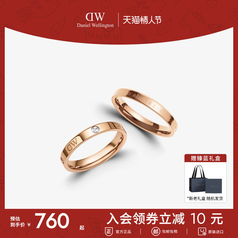 📚 情人节礼物DW情侣对戒 CLASSIC星辰锆石素圈戒指女玫瑰金色婚戒