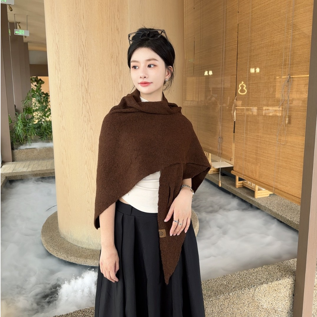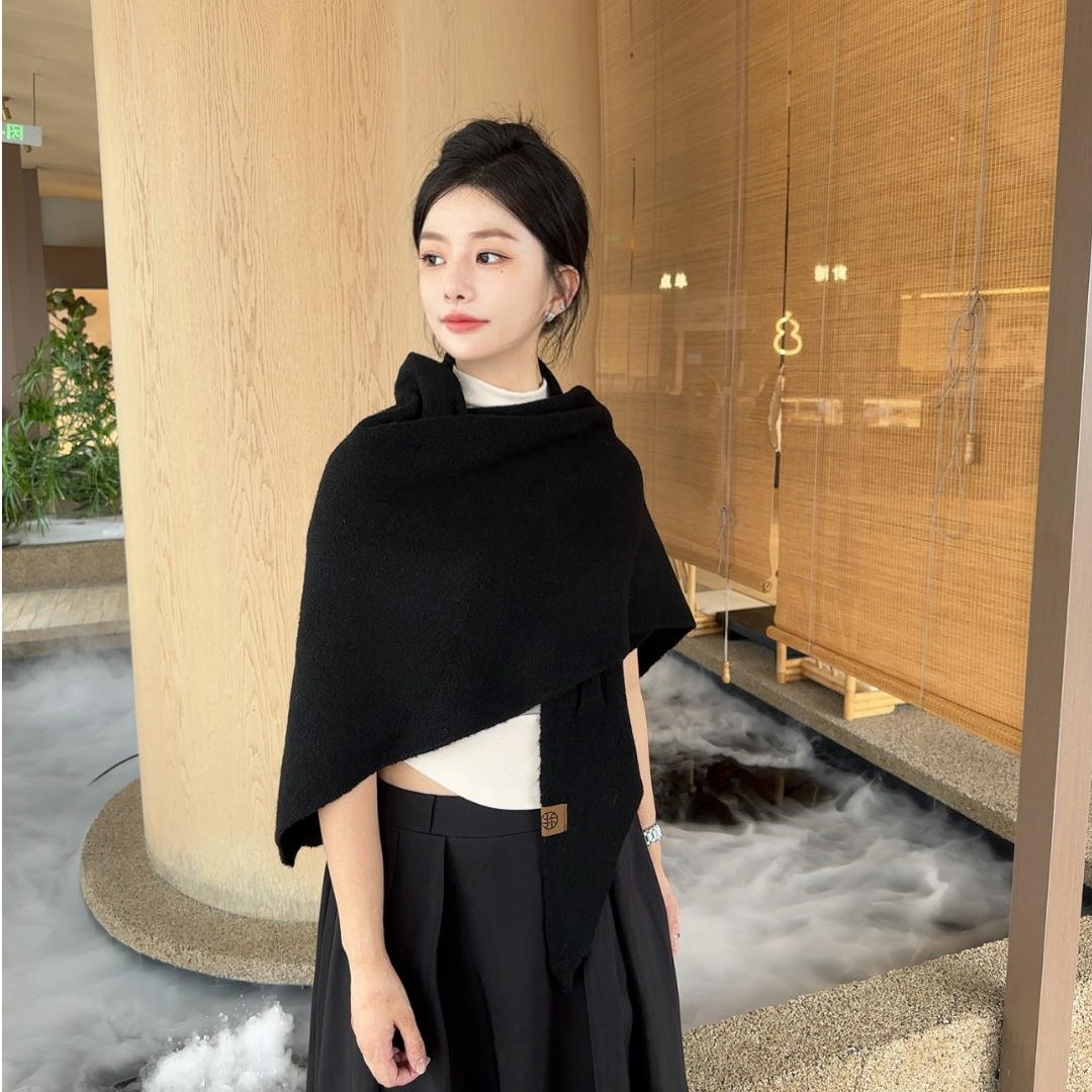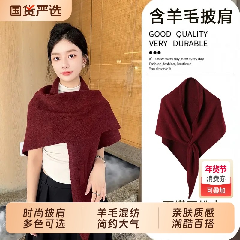 📚 羊毛混纺三角围巾女秋冬斗篷护颈保暖围脖韩系纯色大披肩大气薄款
