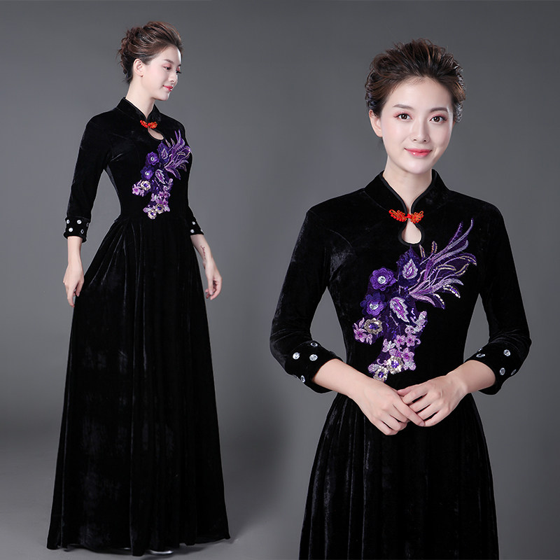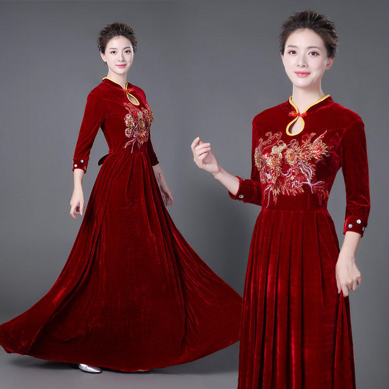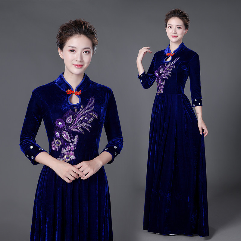 📚 秋冬新款大合唱演出服女长裙金丝绒连衣裙中老年指挥礼服表演服装