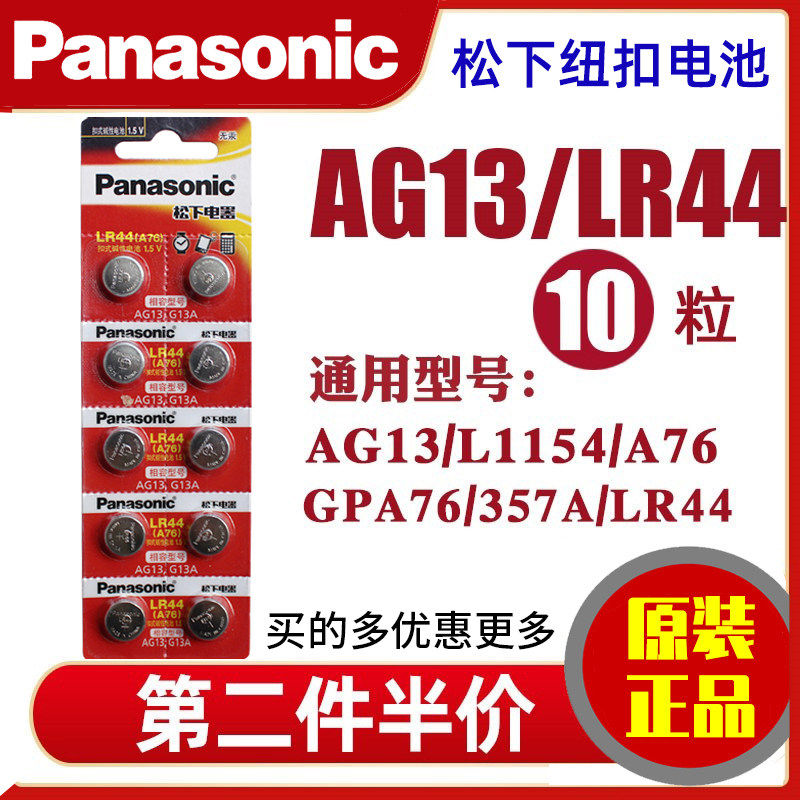 📚 松下LR44纽扣电池AG13儿童玩具ir44游标卡尺A76计算器357a通用SR44钮扣电子手表1.5v小粒L44圆形l1154f小圆形