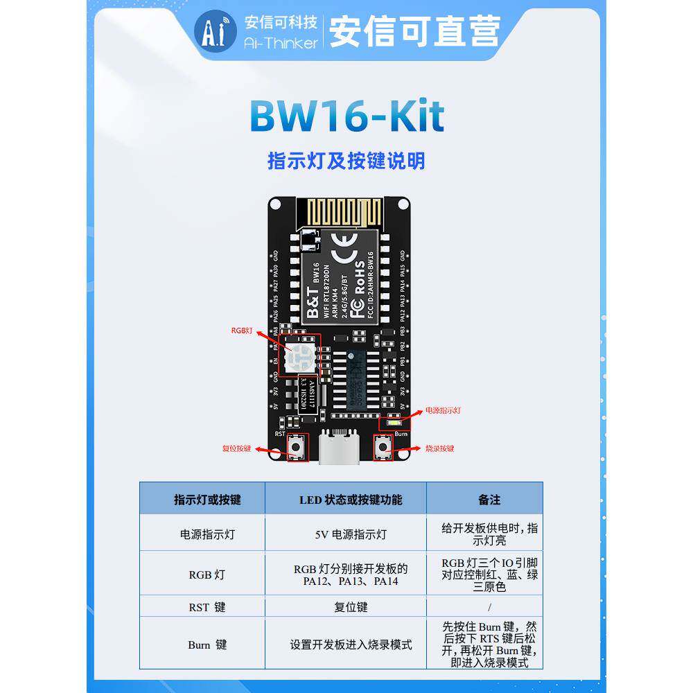 📚 Banantong Rtl8720Dn双频Wifi低功耗蓝牙Ble模块Bw16开发板c型接