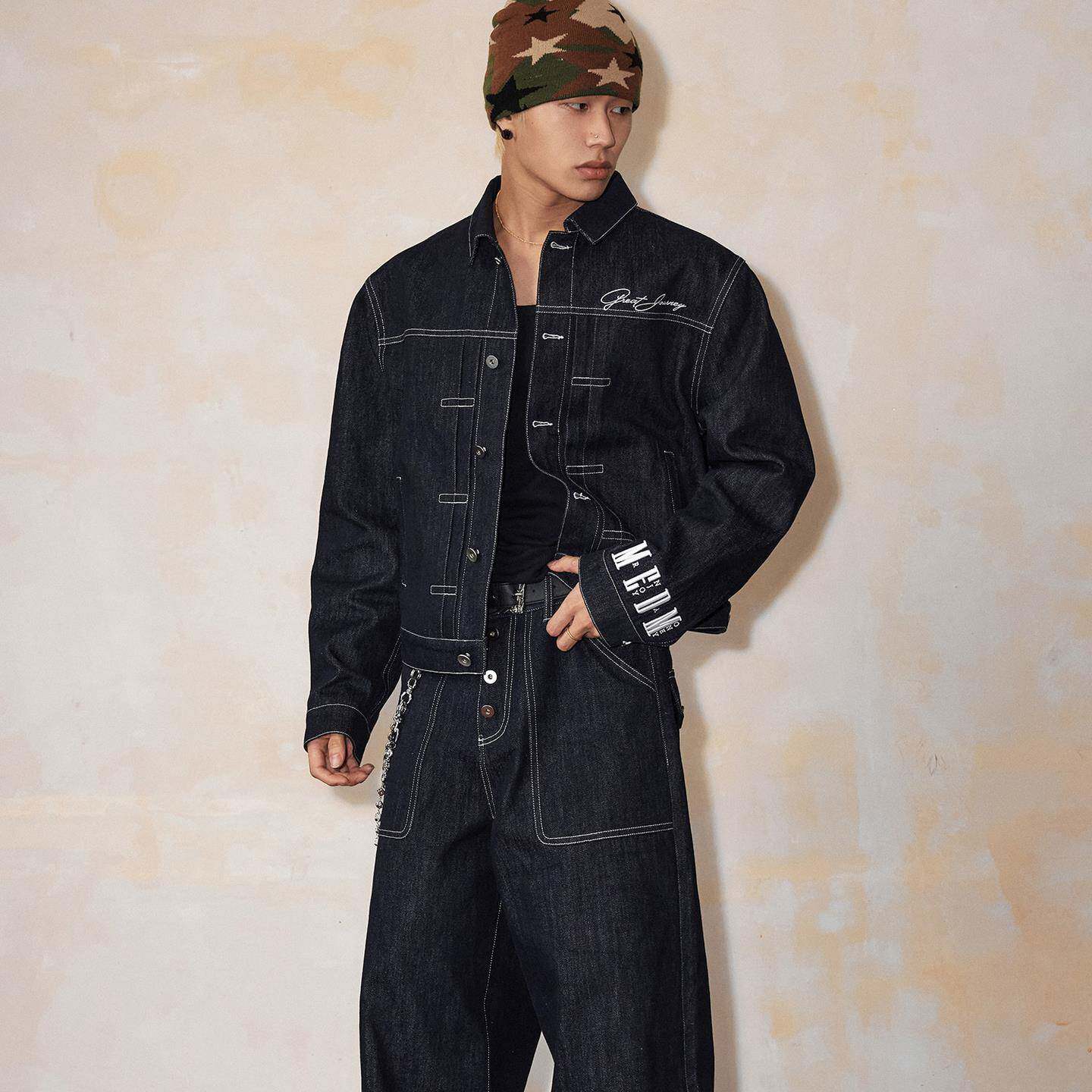📚 MEDM 原牛基础套装袖口字母刺绣休闲外套潮流宽松翻领牛仔夹克男