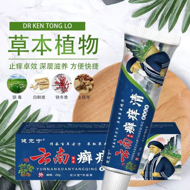 📚 健克宁云南藓痒清百草抑菌软膏脚足气小水泡指缝缓痒拔毒清肌草本