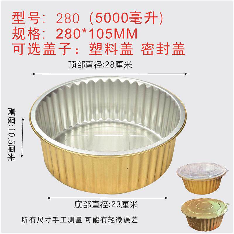 📚 280/5000ML大容量圆形锡纸盒盘碗金色密封铝箔盖商用打包盒可密封