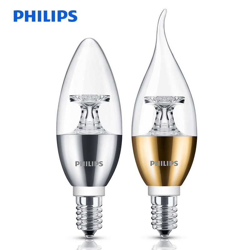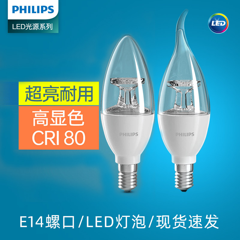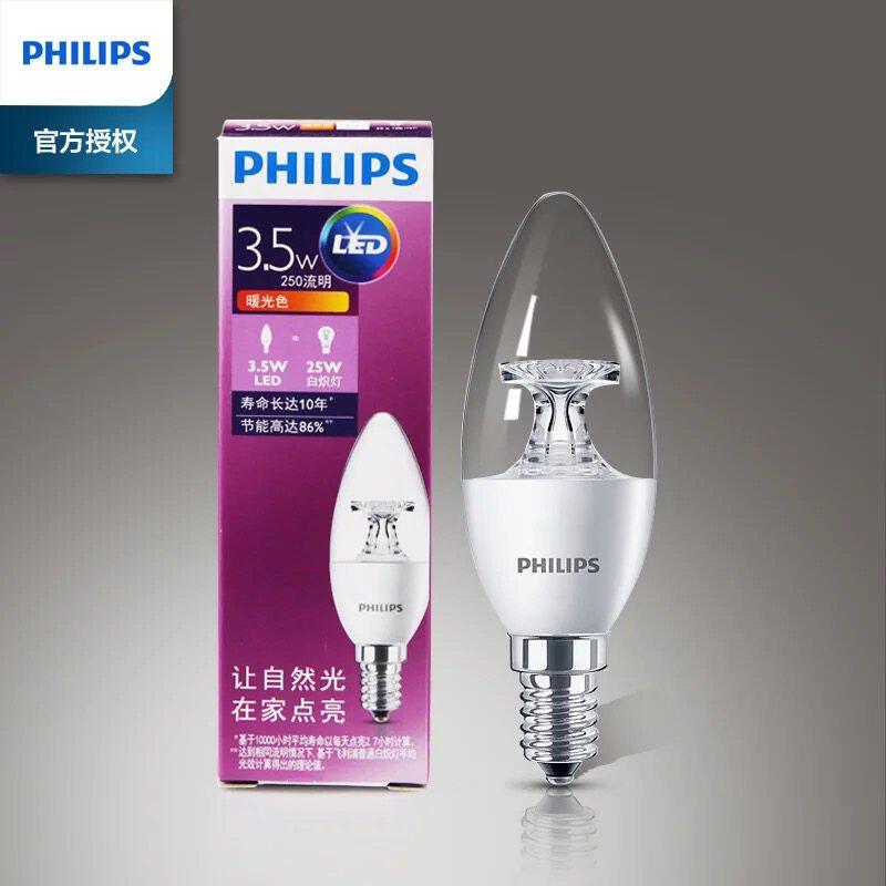 📚 飞利浦led蜡烛灯泡e14螺口5W暖黄白尖泡拉尾水晶吊灯节能光源人气
