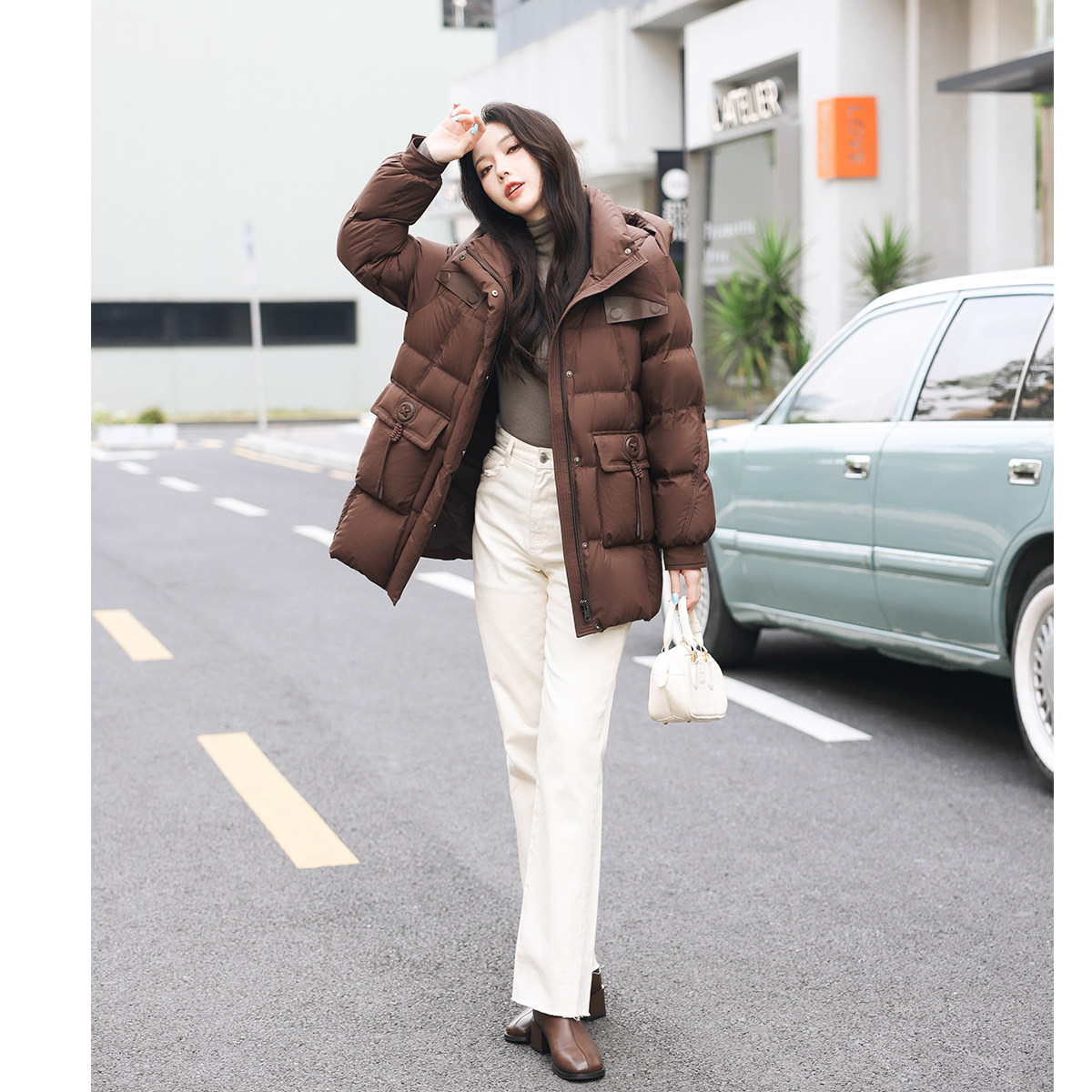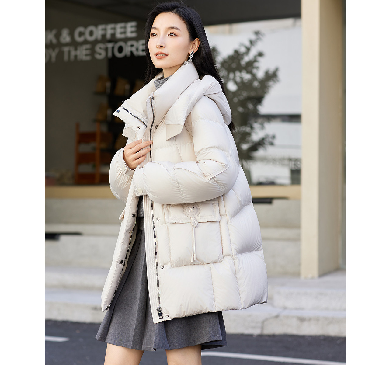 📚 设计感立领连帽羽绒服女款冬季2025新款超好看中长款加厚保暖外套