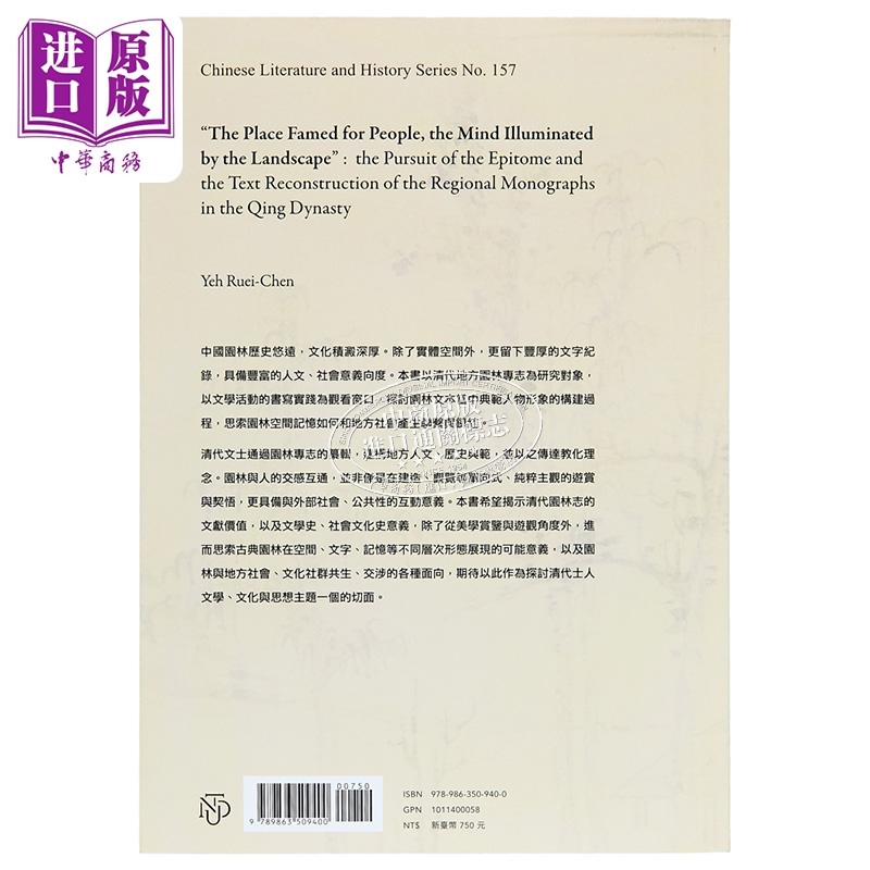 📚 地因人重 即景见心 清代地方园林志的典范追寻与文本重构 港台原版 叶叡宸 台大出版中心【中商原版】