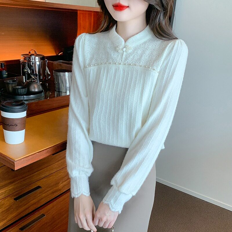 📚 加绒蕾丝打底衫女秋冬2026新款新中式国风盘扣衬衫女内搭磨毛上衣