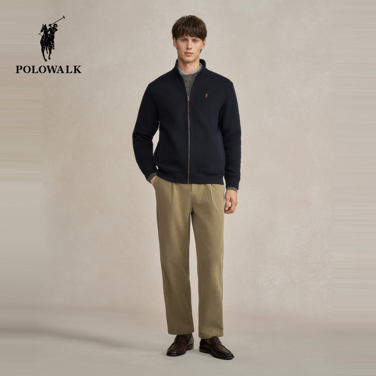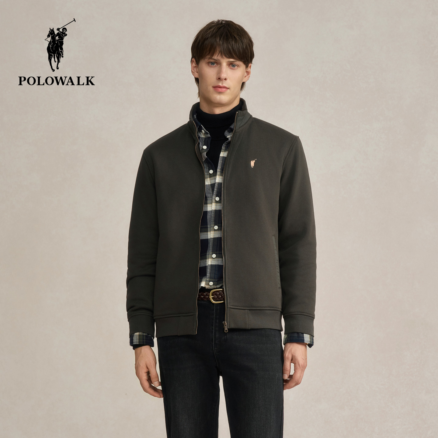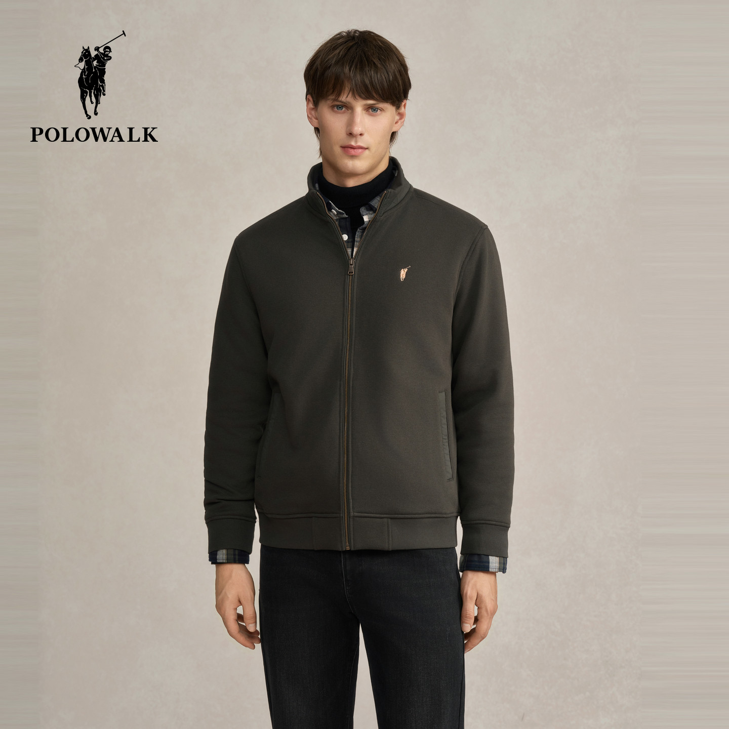 📚 POLOWALK男式卫衣2025冬季新品简约百搭舒适加绒立领外套保暖男装