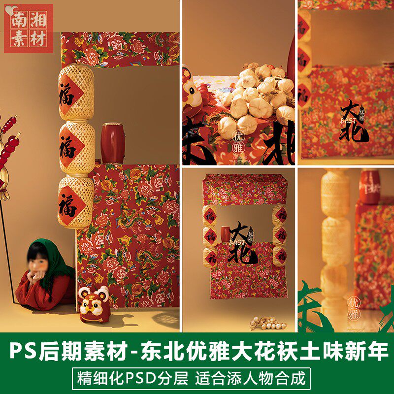 📚 新版大北儿童影楼后期PS模板百天满月宝宝照片设计东北大花袄素材