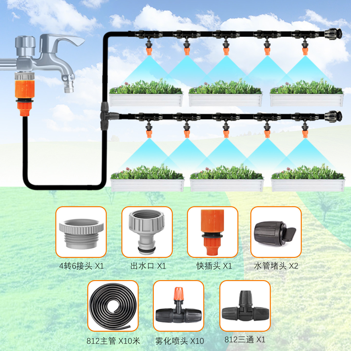 📚 浇花器配件水龙头款812软管地插出水口定时浇水器Y头一分二快插头