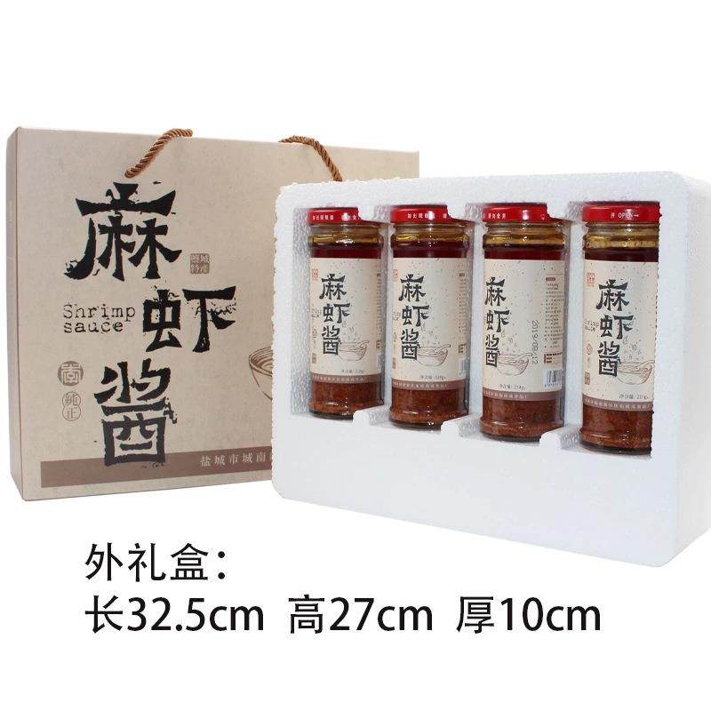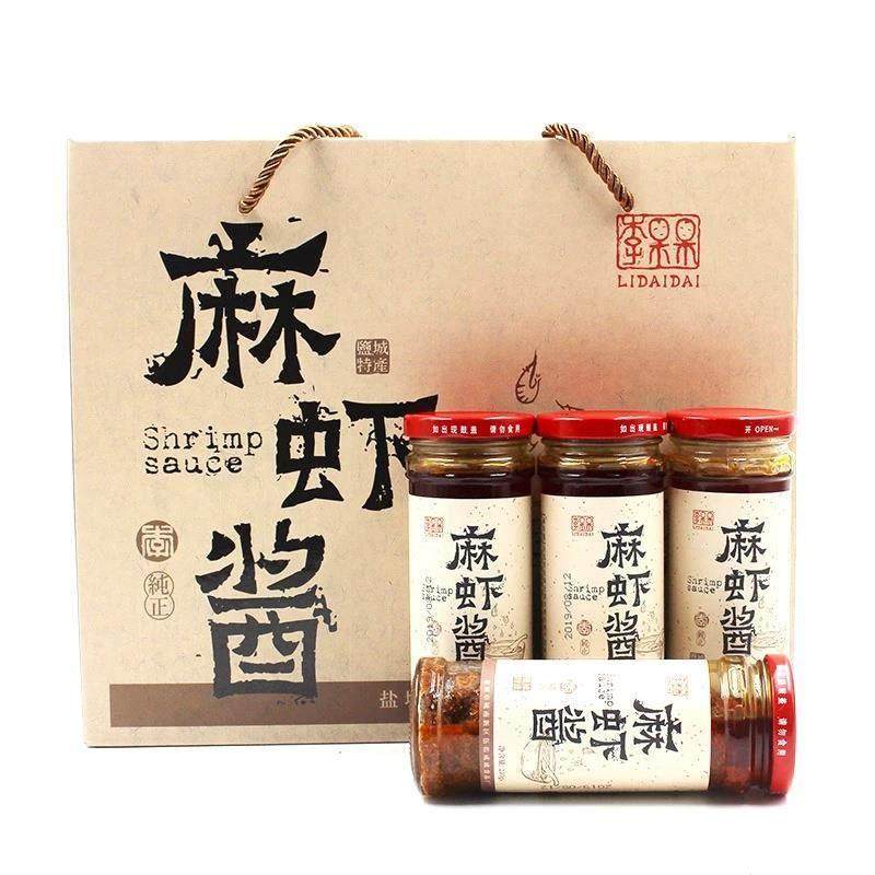 📚 盐城特产李呆呆麻虾酱210g×4瓶礼盒即食微辣海鲜酱东台虾酱