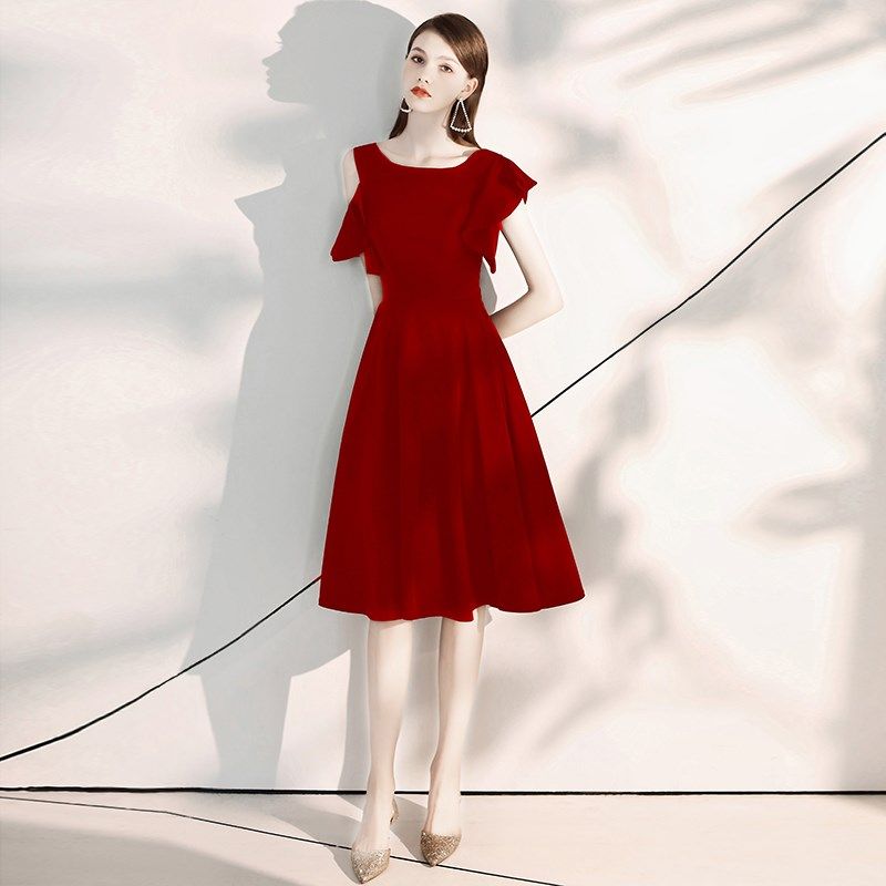 📚 敬酒服新娘回门便装红色连衣裙平时可穿订婚结婚小个子晚礼服裙女