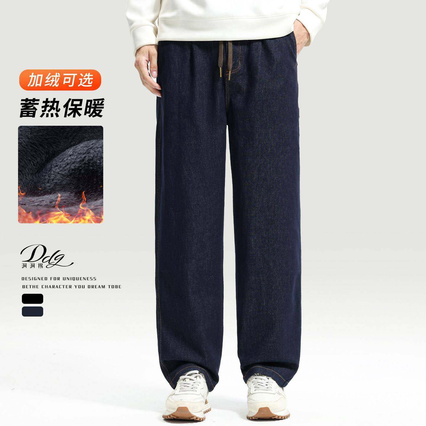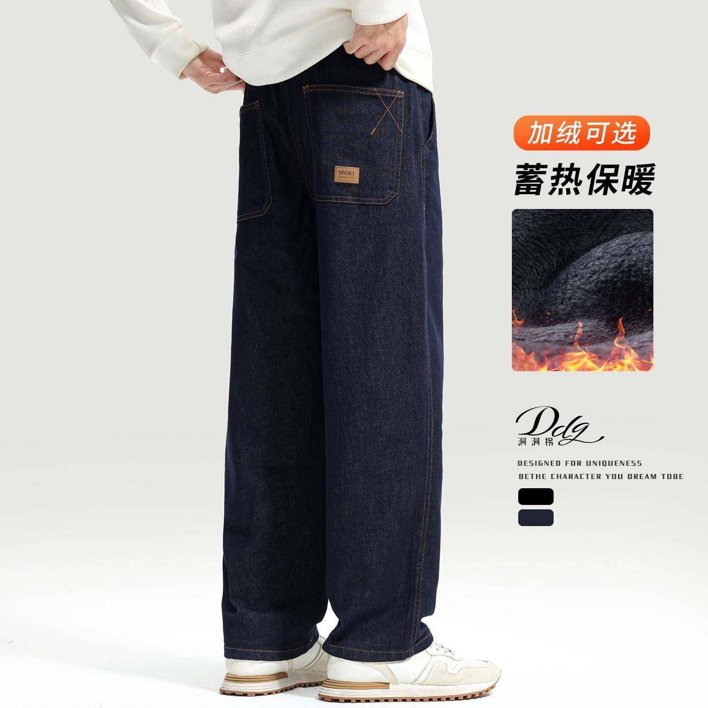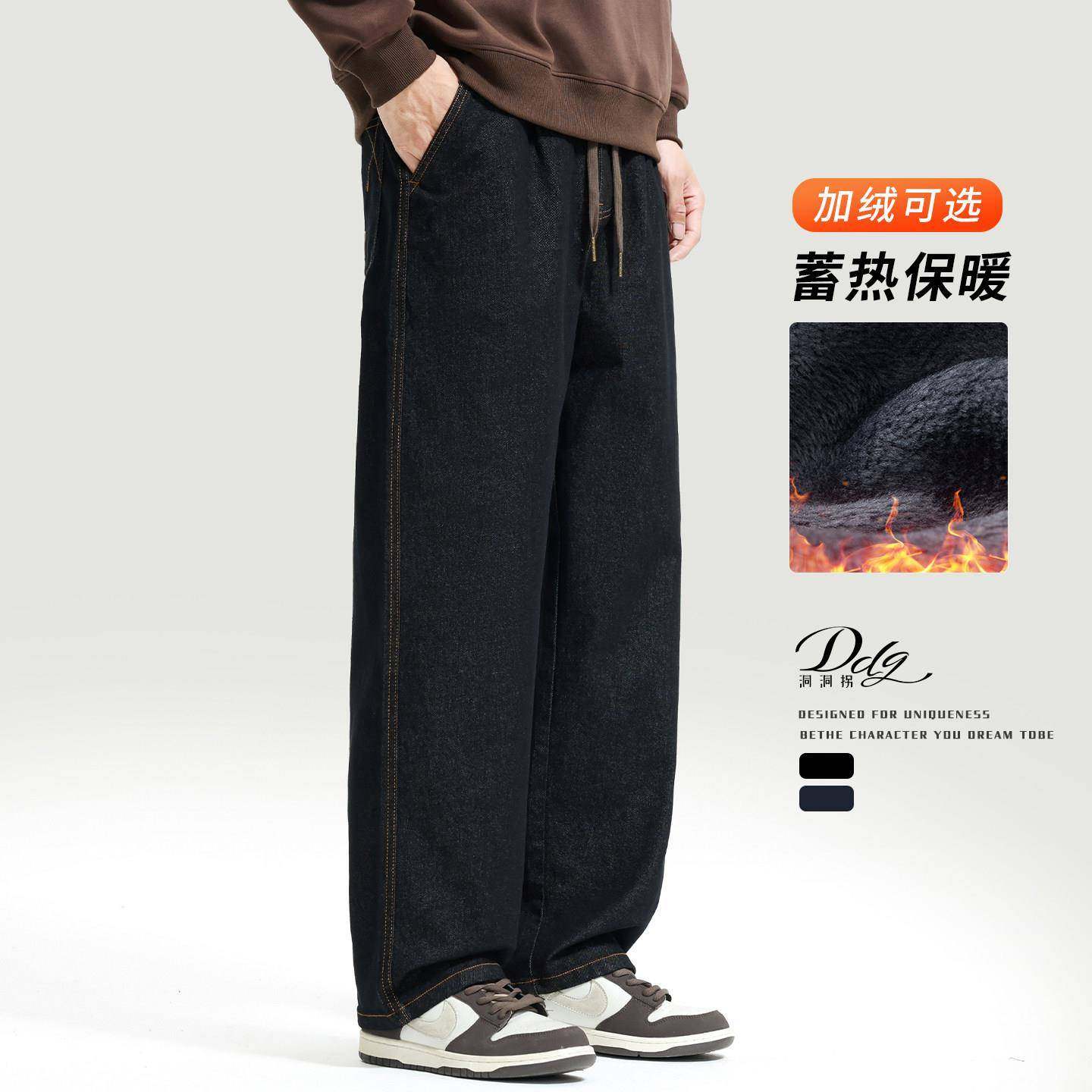 📚 高端赤耳丹宁原牛牛仔裤男士秋冬款直筒宽松阔腿加绒加厚休闲裤子