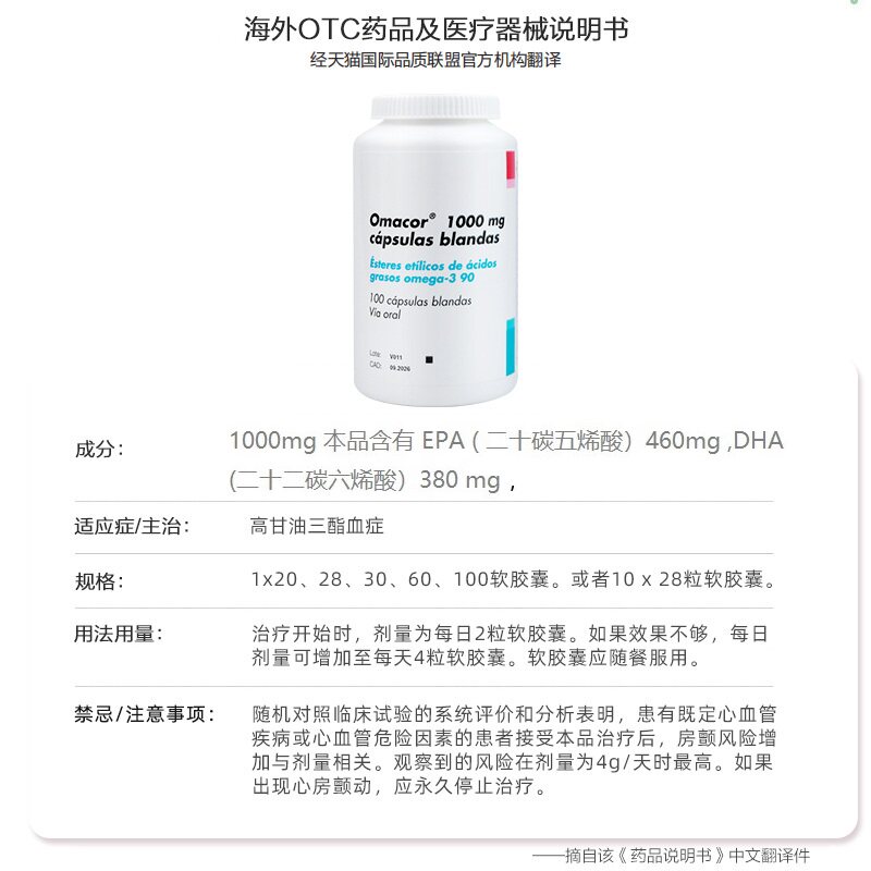 📚 OMACOR鱼油胶囊100粒降血脂医用欧玛进口官方脂肪酸护肝omega3