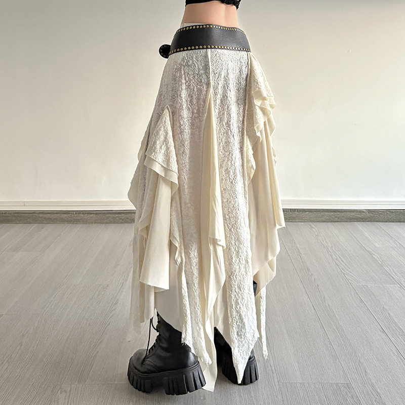 📚 Holiday ruffle edge slimming skirt度假风不规则荷叶边半身裙女