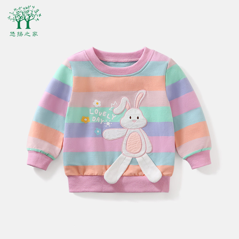 📚 宝宝卫衣秋季新款女孩纯棉打底衫春秋二四岁套头圆领女童上衣秋装