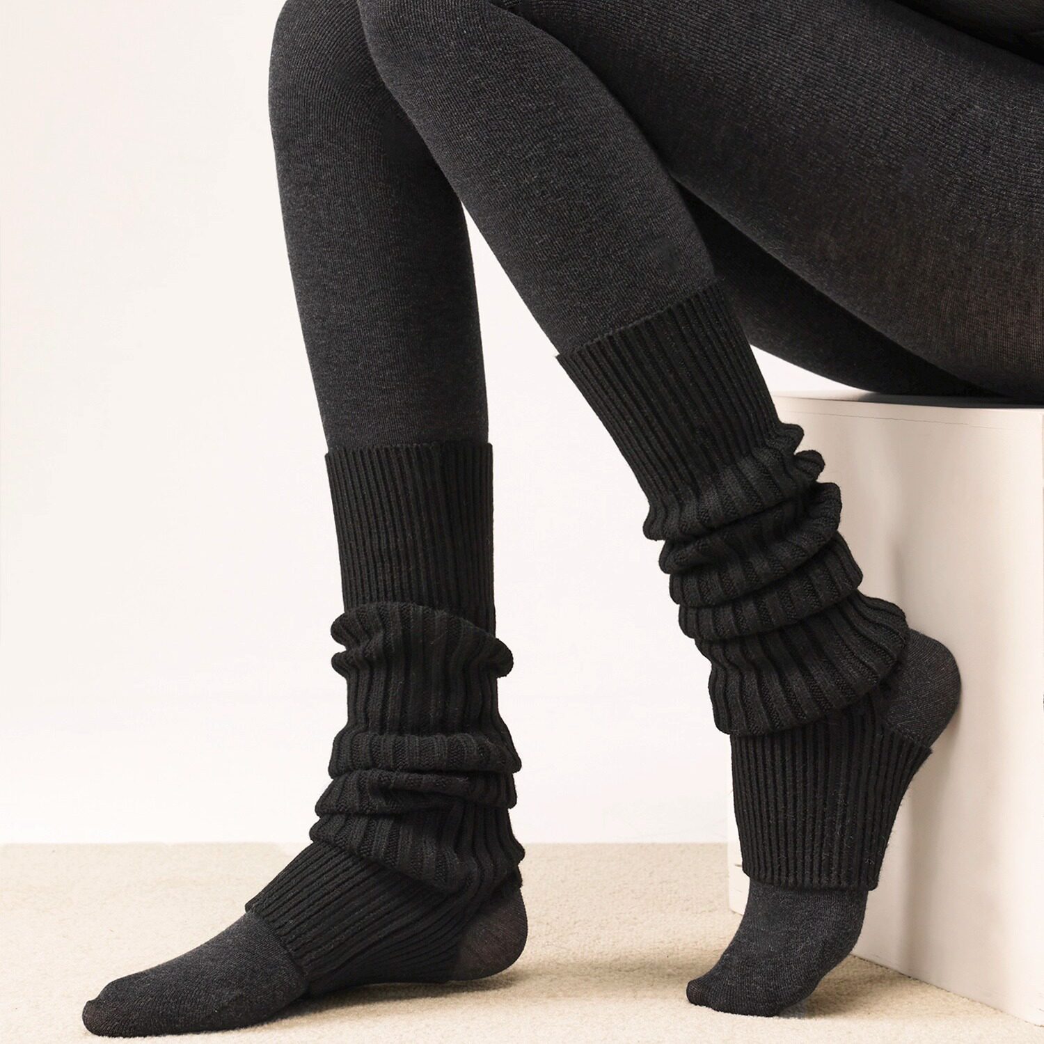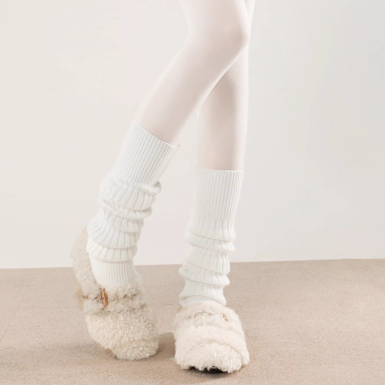 📚 抵达一楼日系白色jk针织踩脚堆堆袜套加厚辣妹保暖叠穿小腿袜显瘦