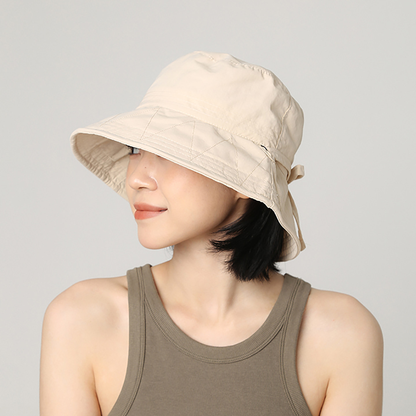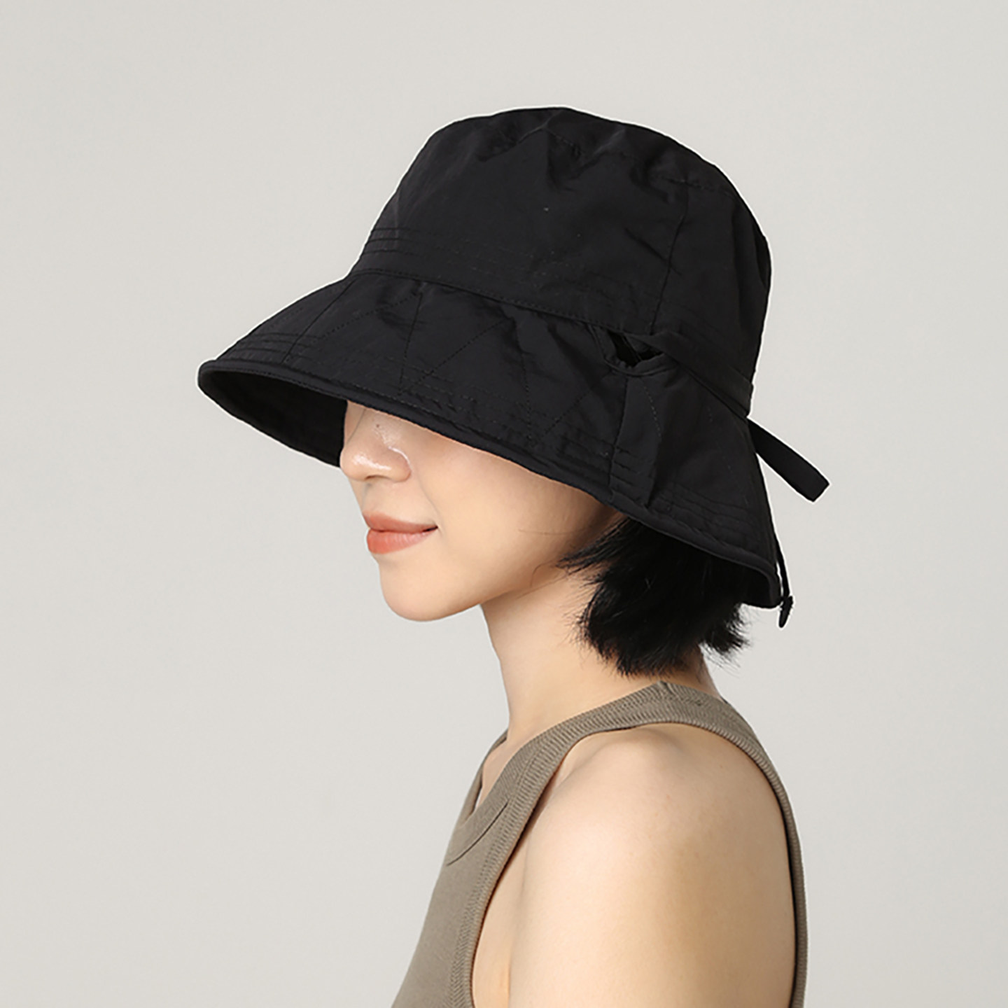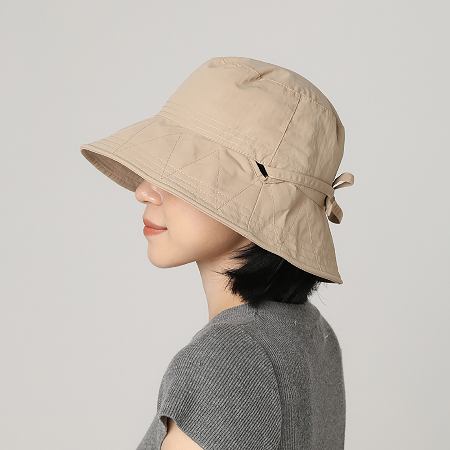 📚 日系抽绳蝴蝶结渔夫帽女夏季薄款透气防晒遮阳速干显脸小绿色盆帽